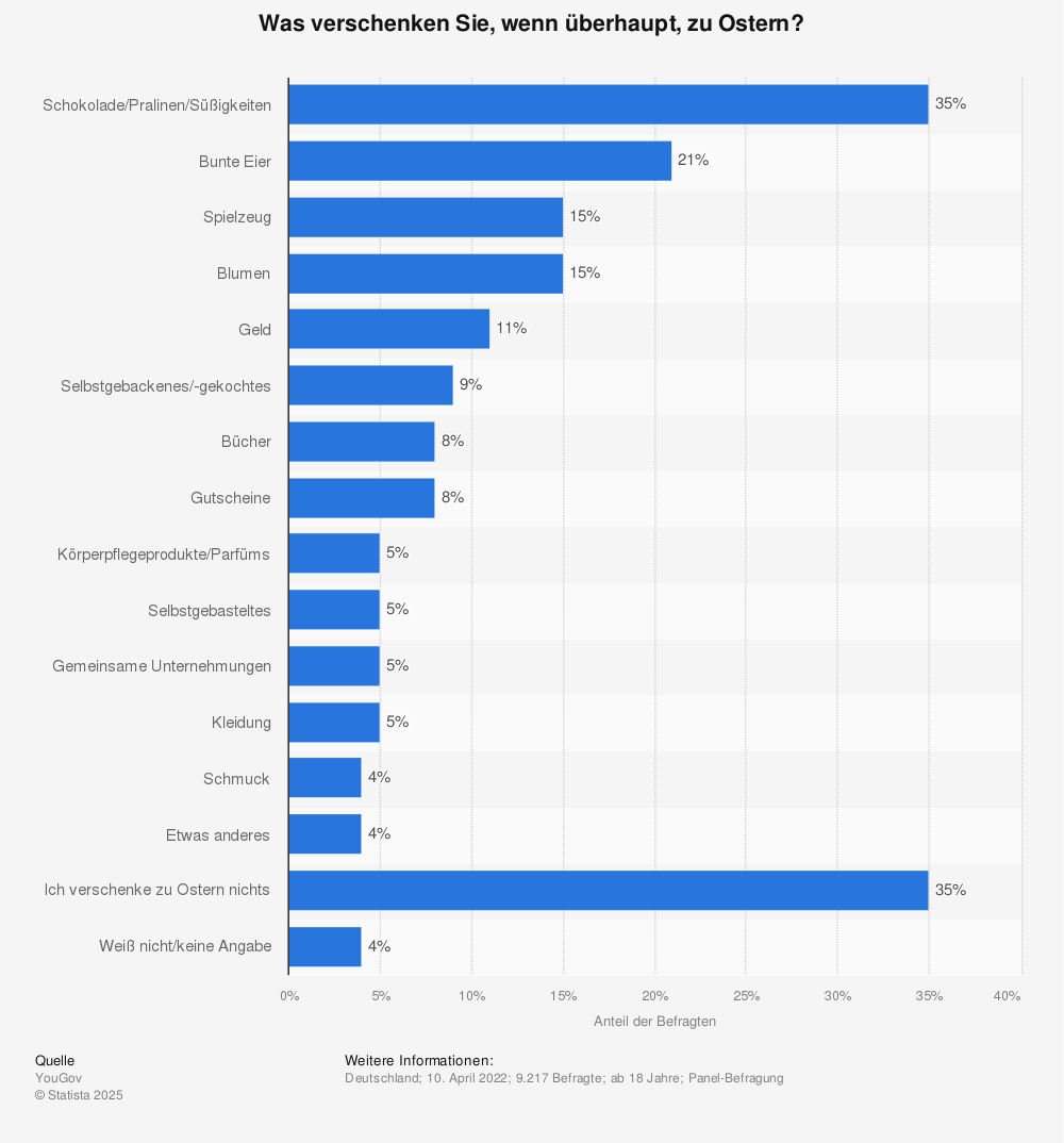 Das Osterei, meist bunt bemalt, wird während der Festtage tatsächlich am zweithäufigsten verschenkt nach Süßigkeiten und das ist eine großartige Sache!